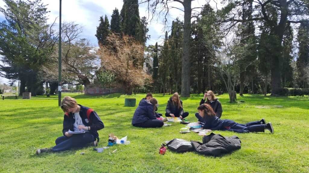 Los alumnos de 3ro A de Nivel Secundario salieron junto a su docente de la materia Plástica a dibujar al Parque Miedan. Una propuesta diferente en la que lograron conectarse con la naturaleza y retratarla en papel.